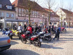 große Tour in diesem Jahr mit den Stammtischlern.... Treffen in Gronau 10.30 Uhr..... Na ja will ja nicht meckern... ist ja Sonntag und Sommerzeit ... 10:50 Uhr sind alle da. Horst, Arne, Manfred, Michael (unser BMW-Fahrer) Ralf, Frank, Sue, Heike und ich :-) Matze, Michael (kein BMW-Fahrer) und Horst hat auch noch zwei Kumpels mitgebracht. Sorry, die Namen sind mir entfallen. Peinlich! Wo ist eigentlich Uwe? Insgesamt 13. Nicht schlecht für den Saisonstart. Ist auf jeden Fall noch ausbaufähig. Ziel ist http://www.guenters-kurve.de den Weg dorthin kann ich mir irgendwie nicht einprägen....aber bis Bodenwerder darf ich wieder führen... Bekannte Strecke Marienhagen, Capellenhagen, über den Ith - da liegt doch tatsächlich noch der Winter rum - Eschershausen, Bodenwerder... " Stimmt Horst, ich hätte Nebenstrecke fahren sollen. Nächstes Mal, ok?" In Bodenwerder gönnen wir uns einen Cappu oder ähnliches. Ab hier übernimmt dann Horst die Führung. Michael( der BMW-Fahrer) meinte ein paar Mal, dass seine Hilfe an der Front dringend benötigt wird *grummel Überholen in der Gruppe ist unter Folterstrafe verboten... Horst führt uns auf Umwegen, aber durch wunderbare Kurven, bis zu Günters Kurve... Super Horst! Was wir dort zu sehen bekommen ist gewaltig! Alle Biker Deutschlands heute hier versammelt? Wo man hinguckt Motorräder! Chromblitzend, blank poliert (nicht alle), alt und neu, schön und hässlich -ist relativ, ich weiß, jeder hat sein Möppi lieb - *lächel Natürlich esse ich Apfelkuchen mit Sahne, was sonst! Kuchen oder Bratkartoffeln mit Frikadelle. Satt geworden sind wir alle (auch Michael der BMW-Fahrer *grins) trotz Stau vor dem Tresen. Dafür ein herzliches Dankeschön an Hanna und Günter. bei euch ist es immer wie bei Muttern :-) Die Rückfahrt führt rechts der Weser entlang bis nach Hameln. Dort trennen sich unsere Wege. Die Hannoveraner gen Norden, Matze, Michael (nicht der BMW-Fahrer) und ich gen Osten. Für Matze war mein Tempo einfach nicht ausreichend.....ähmm kurzer Stop an meiner Linken " winke Matze, Hand zum Gruß" und dann zog er davon mit seiner Double XX.... "schön, dass du dabei warst." Na und weil das so ein super Tag war, gestört hat eigentlich nur der Wind, der teilweise doch sehr ekelig von der Seite am Möppi zerren musste, warum auch immer ;-) hat mich Michael (der Nicht-BMW-Fahrer) noch zu einem netten Essen im 'Eichsfelder Hof' eingeladen. Danke Michael :-) Satt und zufrieden war dann der Tourentag um 19:30 Uhr zu Ende. Freu mich schon auf den nächsten! Startseite zurück