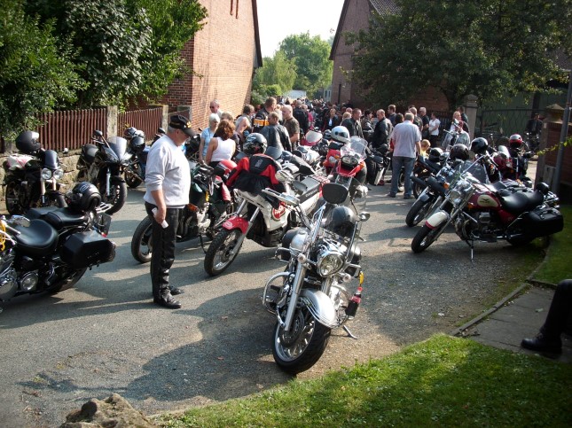 die Auspuffe und glänzen die Motorräder, aller Klassen, im Licht der Sonne um die Wette. In Serpentinen schlängeln sich die Maschinen die Straße den Ith hinauf. Ein traumhafte Ausblick über das Tal bis hin zum Thüster Berg!. Die Strecke führt uns bei spätsommerlich warmen Temperaturen von Hemmendorf über Wallensen, Capellenhagen und Halle weiter bis nach Coppenbrügge, um im kleinen Salzhemmendorfer Ortsteil, nach 45 km, wieder zu enden. Hochkonzentriertes fahren war angesagt! Ein Konvoi von 650 Moppeds und lt. DEWEZET 900 Personen ........ erstreckt sich auf über acht Kilometer!!! WOW Und wir mitten drin ;-) Stimmung war toll und wie es denn so iss trifft man /frau trotz der Menge noch Bekannte... Andrea und Eckhard ... Volkert ...und mein Bruderherz ...*freuhüpf War ein super toller Tag mit euch.. Danke! Auch wenn bei dem Versuch ein Foto von mir und meinem Bruder zu schießen die Linse geplatzt ist *lach ( Weiß der Geier warum gerade das...) habe ich doch ein paar Aufnahmen machen können, die das Feeling des Tages hoffentlich ein bisken rüberbringen... Herzlichen Dank an die Hemmendorfer Löwen für dieses tolle Erlebnis... Im nächsten Jahr bin ich gaaanz sicher wieder dabei ... kannste glauben ;-)) |